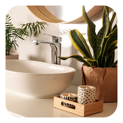 Indoor plants that can thrive in a warm, humid environment that a bathroom provides are the most recommended. Some favorites include peace lily, pothos, aloe vera, snake plant, and calathea, among others. But if your bathroom doesn't have windows, a live plant probably isn’t the best idea. You may opt for a single stem of your favorite bloom or a branch with beautiful leaves placed in a jar to make a simple but elegant look. Preserved or faux plants are great options, as well.